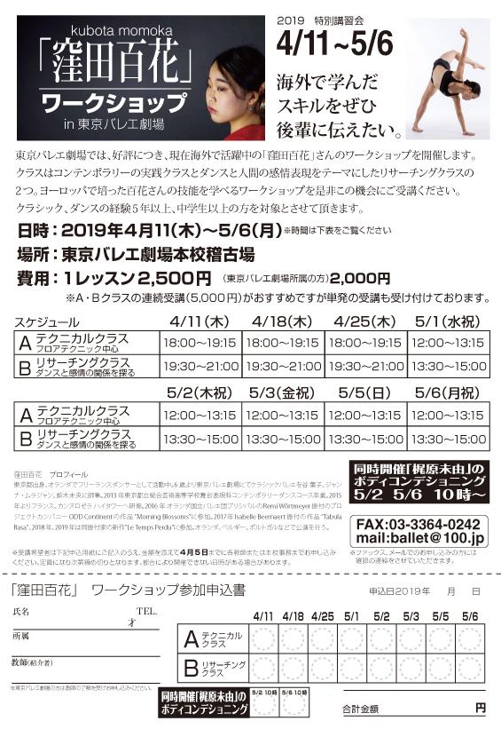 同時開催「バレエダンサーのためのボディコンディショニング」講師:梶原未由